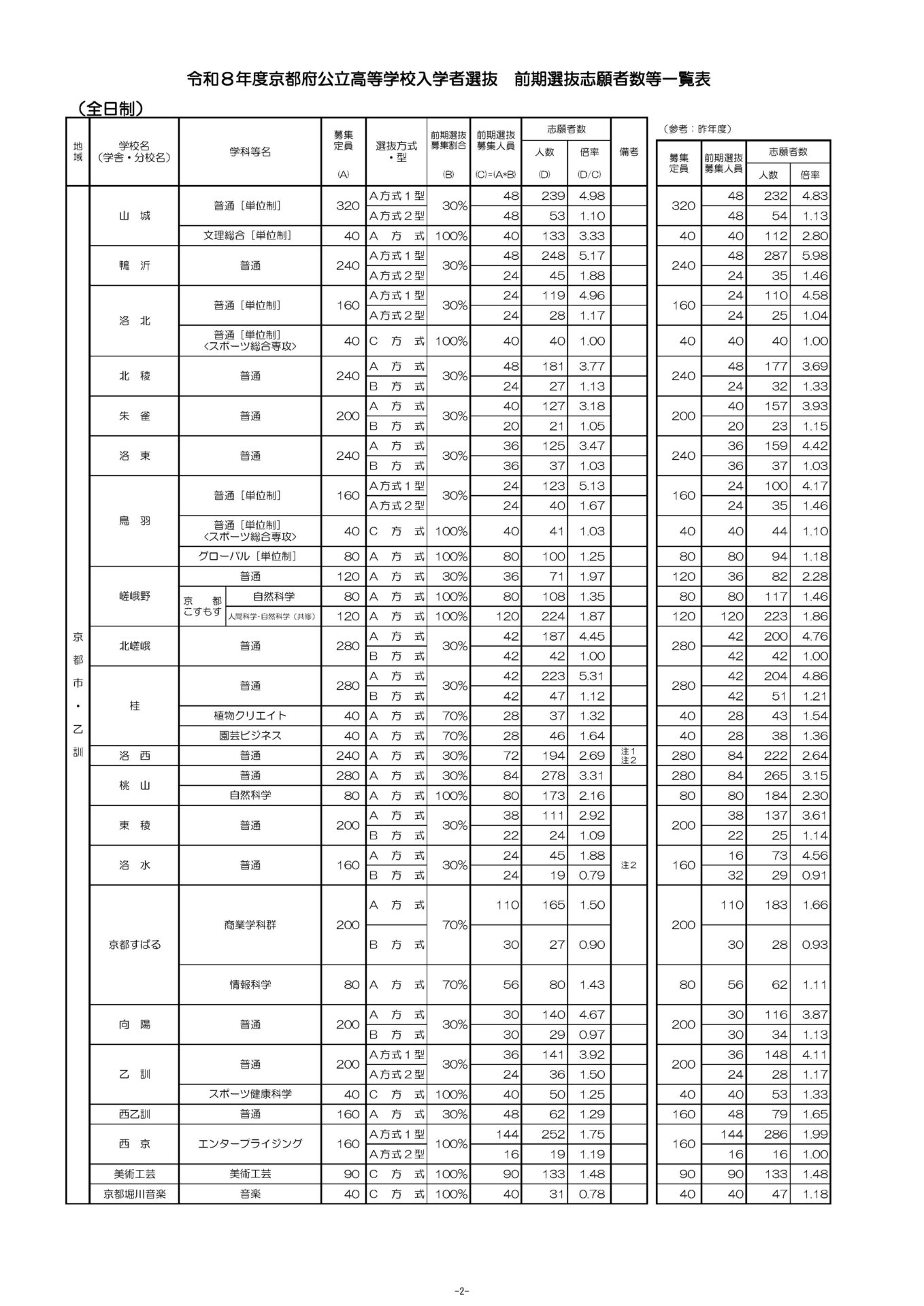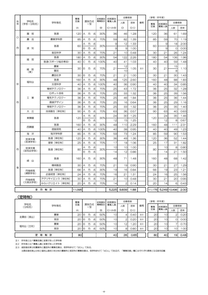 京都府公立高校入試 令和8年度 前期選抜 志願者数・倍率