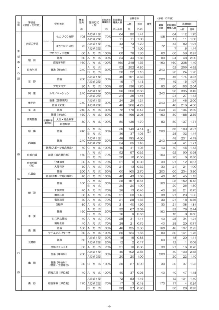 京都府公立高校入試の令和8年度 前期選抜の志願者数と倍率が京都府教育委員会HPにて公表されました。ご確認下さい。